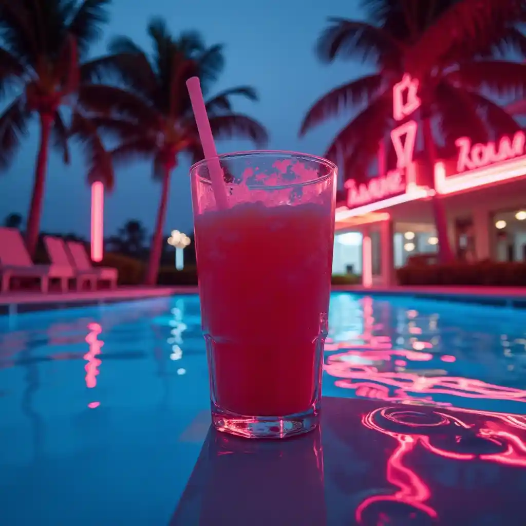 CalebMiami, néon, verre rouge, palmier, fond de maillot de bain