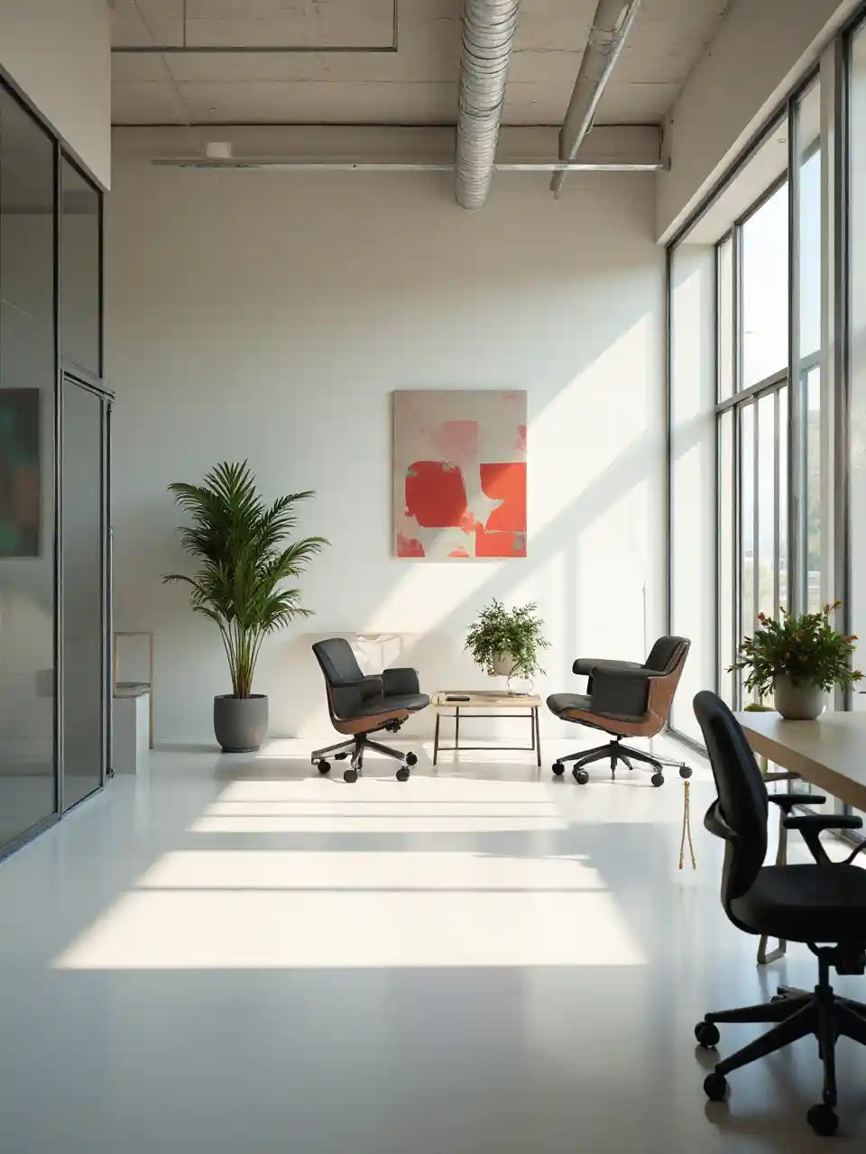 Explorez le design minimaliste des espaces de bureaux modernes avec un toucher artistique