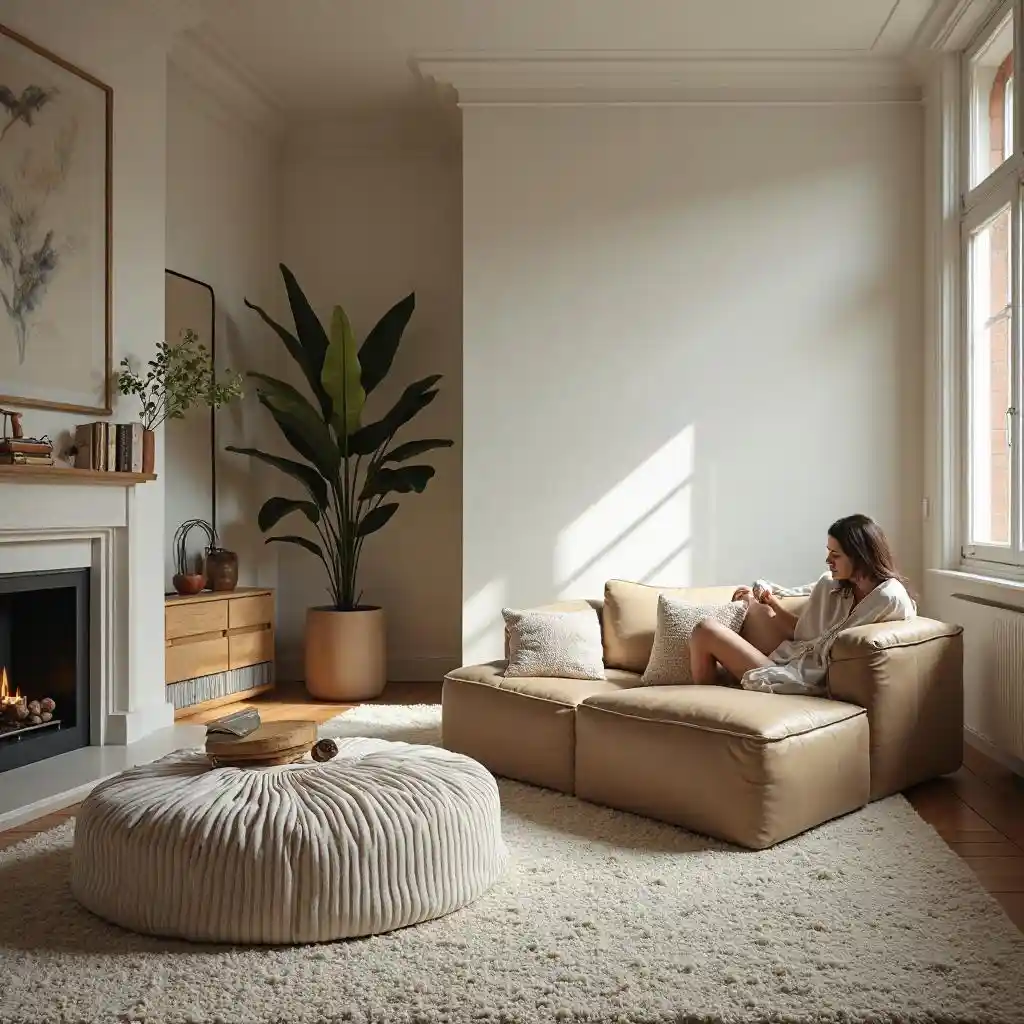 Une chambre moderne avec tapis et femme