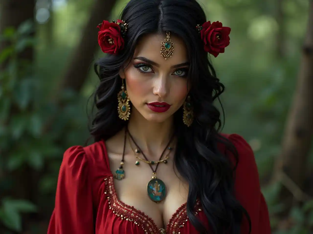 Gitane reine rouge vif Eurasie latin vert yeux brun tarot devin
