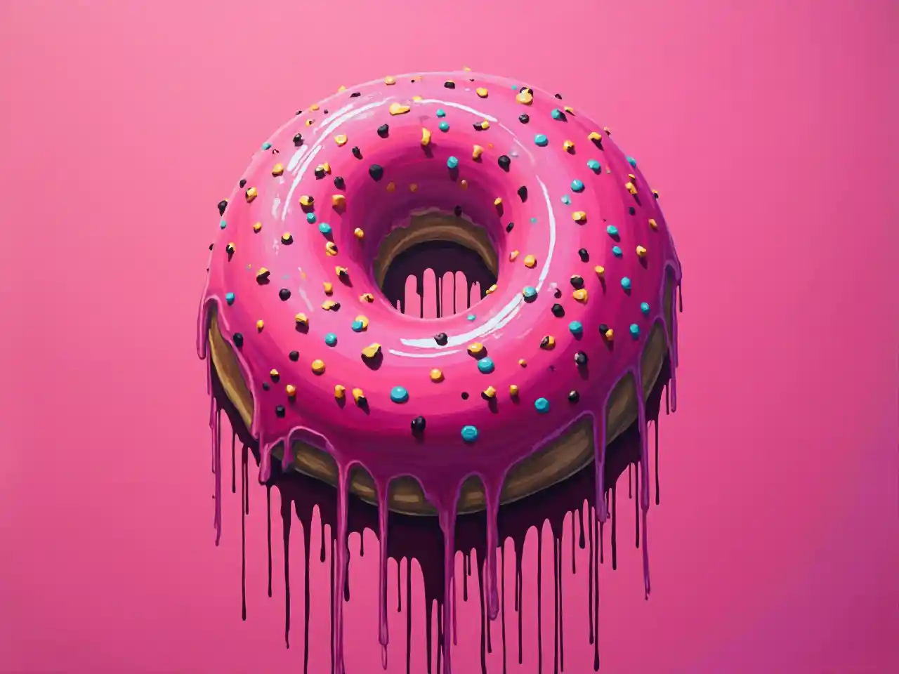 Un tableau de beignets, dégoulinant dans la peinture néon, un rose brillant surréaliste, d'Anthony Pittsault, avec de la peinture néon dégoulinant, des néons dégoulinant de pigment, fondant dégoulinant. Bizarre, inspiré de Nick Gentry, inspiré de Roberto Parada