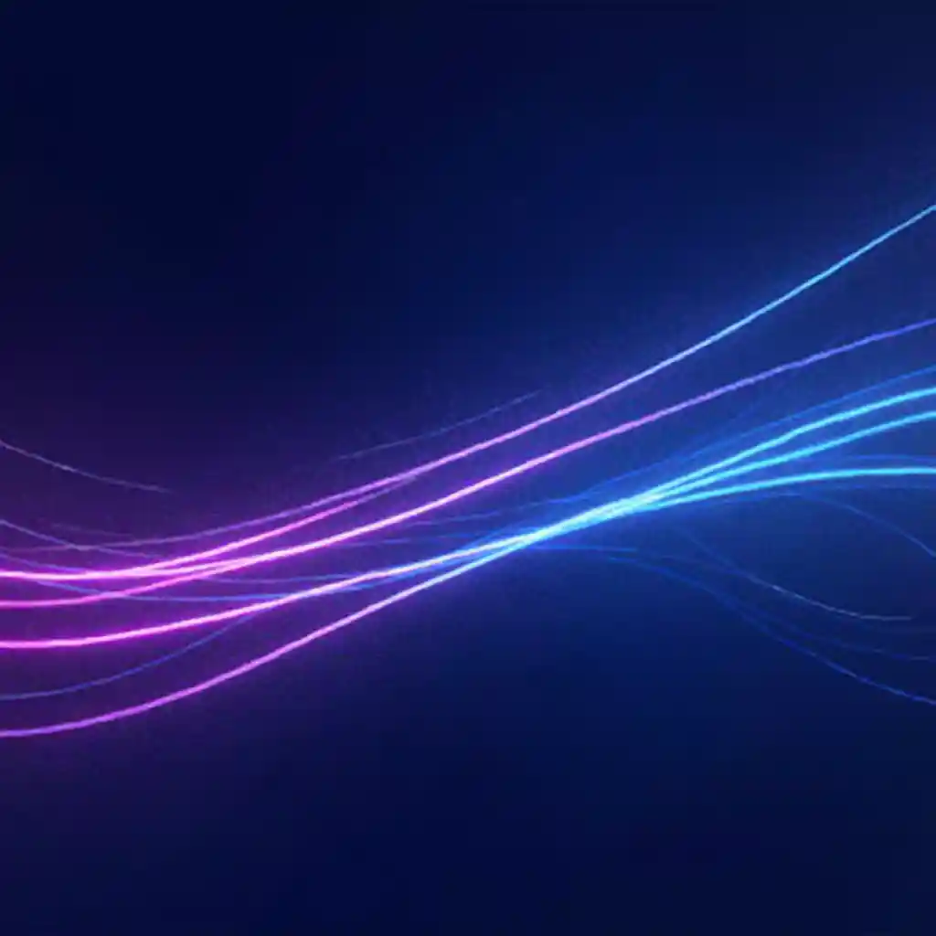 Un fond vectoriel à effet néon, avec des rayons violets et bleus sur fond bleu foncé. Diagramme vectoriel de courbe qui représente le mouvement de vitesse et le mouvement rapide dans le style de l'art numérique.
