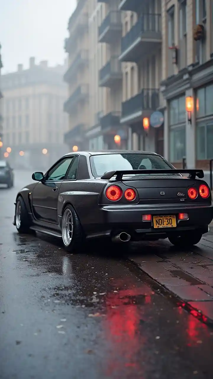 Nissan Skyline équipé d'un gros aileron et de mini-roues