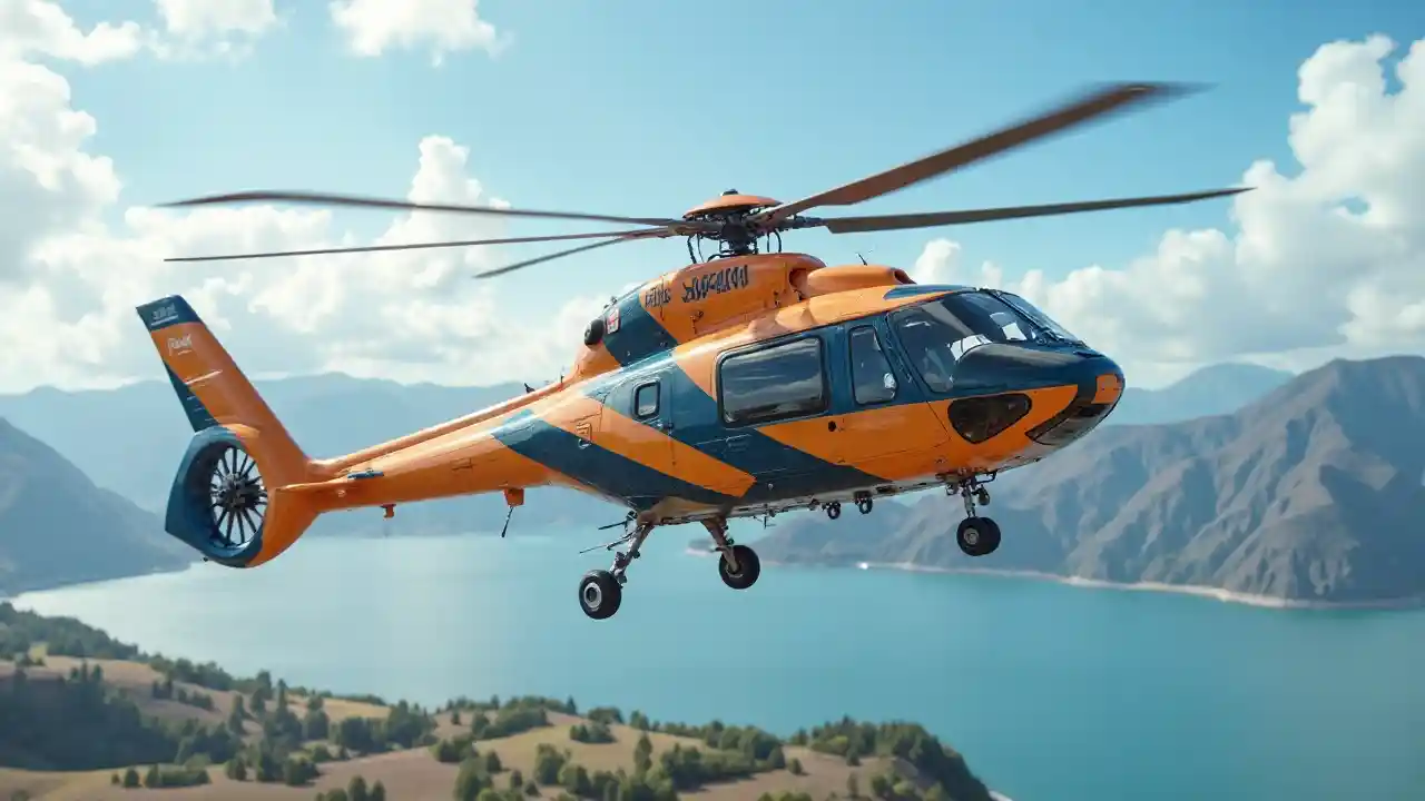 Des photos époustouflantes d'hélicoptères orange et bleu
