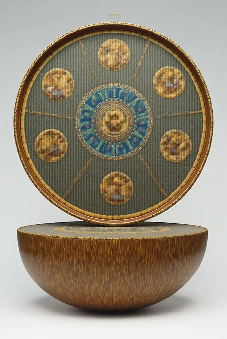 Un immense tambour rectangulaire, divisé en sept compartiments contenant chacun: 2, S, e, a, a, r, t, qui sont les éléments centraux. Le tambour est orné d'un exq