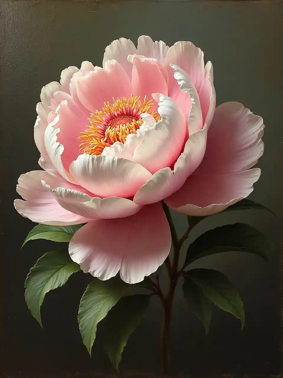 LeviGrande pivoine rose sale couleur peinture à l'huile Willem van aelst floral artiste néerlandais nature morte style baroque couleur or teinte beaux-arts
