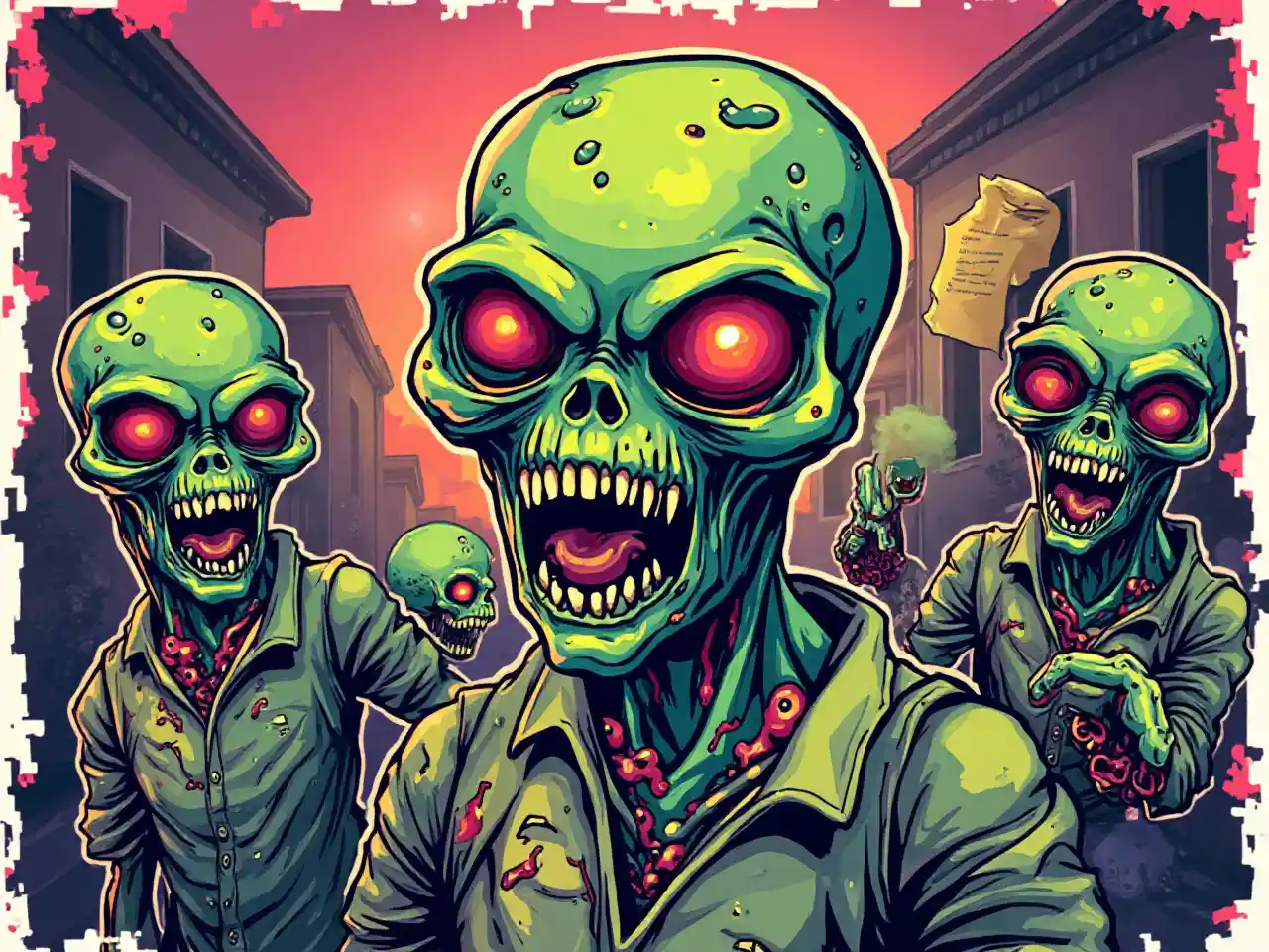 Pop Art illustrations, autocollants, extraterrestres zombies