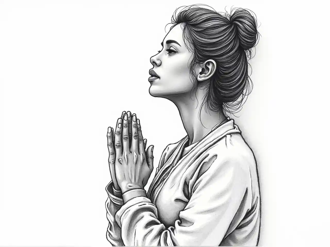 Une femme afro-américaine croque en noir et blanc dans la prière