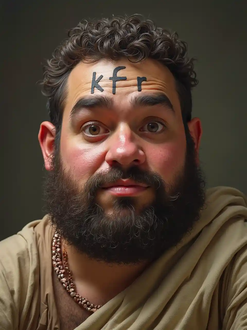 Le gros borgne au teint rouge, aux cheveux bouclés et aux lettres arabes « k-f-r » (« ne pas croire ») inscrites sur le front.