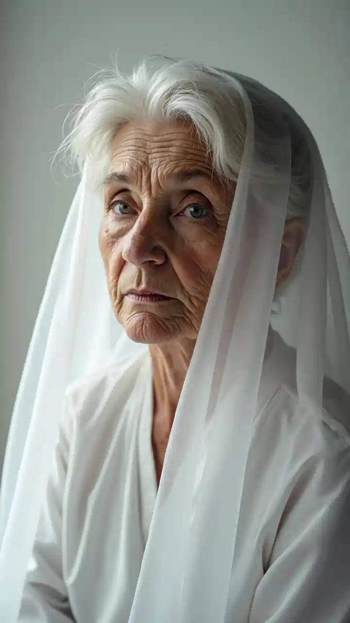 Une vieille dame en voile transparent