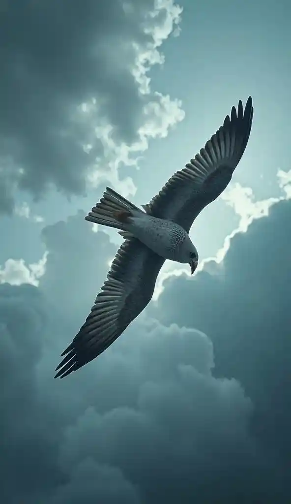 GarethPicture Panorama du point de vue d'un goëland volant dans le ciel, au dessous de lui on y voit un galion pris en pleine tempête et à la lutte avec un calamar g