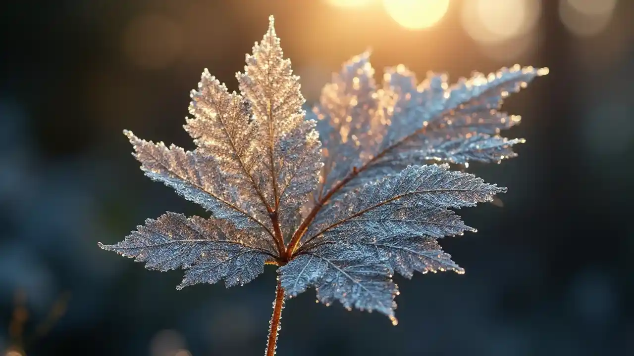 Squelette de lame de détail haute définition, le cristal d'argent goutte un rétroéclairage chaud pour projeter une longue ombre