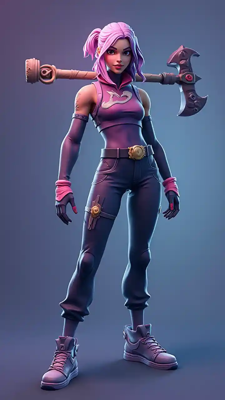 Fortress Night, connu sous le nom de « sirène » Équipement de jeu vidéo tenant la pioche disponible dans le jeu Fortress Night, connu sous le nom de « Axe de champion » au-dessus de la tête