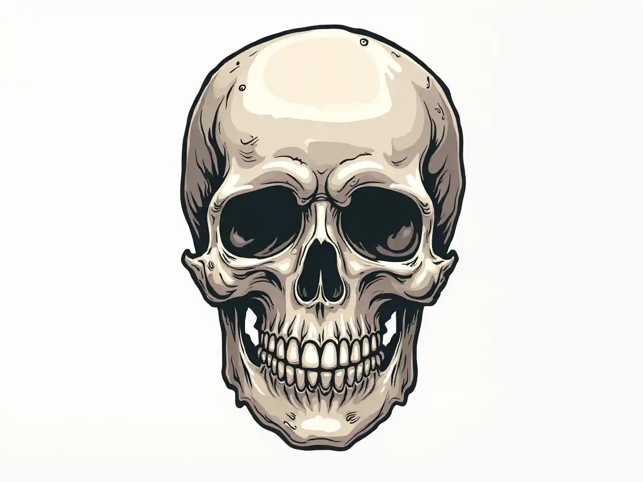 JoannaVector vintage Logo du crâne humain dans le style de simple ligne de base Art de la bande dessinée vectorielle sur fond blanc