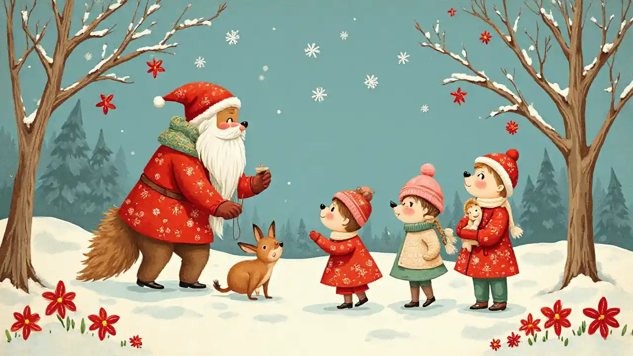 Création d 'une illustration de carte postale rétro soviétique dans le style des cartes de vœux pour enfants et festivals des années 1960-80. Utilisez des thèmes classiques: l 'hiver, les scènes du Nouvel An, les personnages de conte de fées (le givre du père, la fille des neiges, l'ours, le lièvre, le renard), les registres de fleurs festives, le 8 mars, le 1er mai ou les moments de famille. Le style doit ressembler à l'illustration traditionnelle du livre: lisse, bien rangé, doux rempli d'aquarelle ou de gouache, la texture du papier est visible, parfois avec de légères particules ou des effets d'impression vieillissants. Palette de couleurs: riche mais douce, dominée par le bleu, le rouge, le rose, le vert, l'or. Composition: harmonieuse, avec des figures ou des groupes centraux, des éléments décoratifs (rubans, guirlandes, flocons de neige, fleurs), souvent avec des cadres ou des objets décoratifs le long des bords. L'ambiance: chaleureuse, festive, légèrement magique, très agréable, évoque la nostalgie de l'enfance et des fêtes soviétiques. Ajouter une stylisation de carte postale rétro: salutations en polices rétro, inscription décorative (" Bonne année! " , "Trois huit!" , "Félicitations! "), Jouets, cadeaux, lanternes, flocons de neige et autres petits détails. Aucun objet ou style moderne n'est utilisé - illustrations soviétiques classiques seulement!