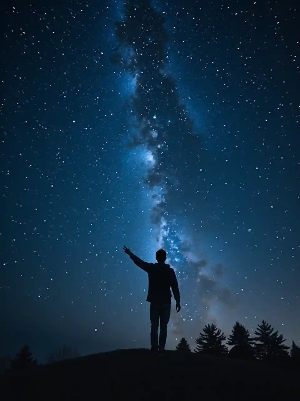 Une photo de couverture de Facebook d'un homme pointant du doigt un début lumineux dans un ciel sombre avec la légende "C'est le ciel le plus sombre que vous ayez trouvé, l'étoile la plus brillante" Très petite, mais la galaxie est détaillée