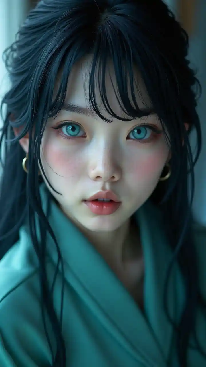 Cheveux bleus et noirs, yeux bleu-vert hors du monde, jeunes Coréennes à la beauté inhumaine
