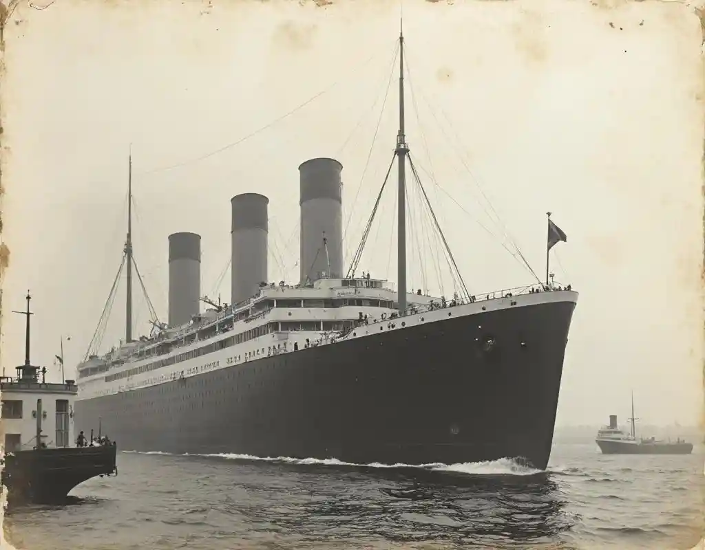 QinxueVieille photo délabrée en noir et blanc du RMS Titanic dans le port peu avant son départ, 1912,