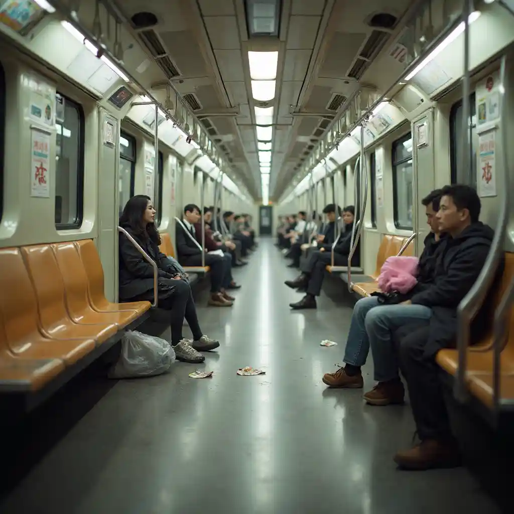 LandonLe métro de Tokyo vide, avec des détritus au sol