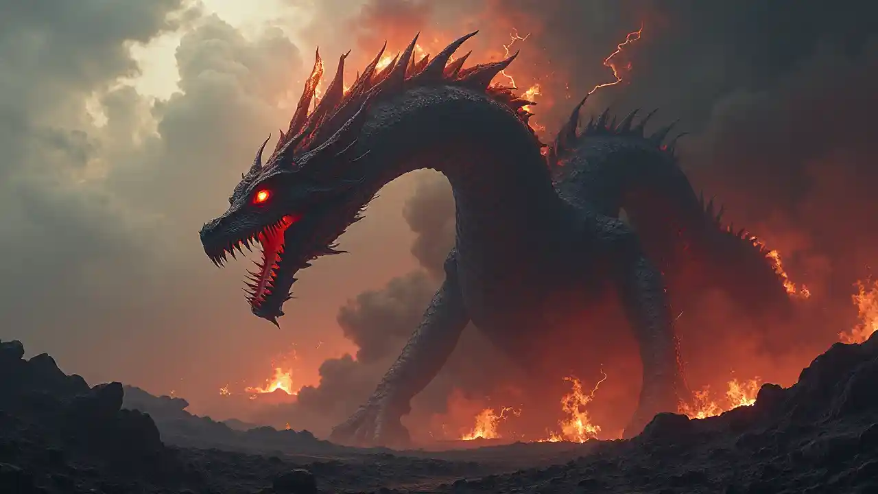Le majestueux Typhon s'élève dans un paysage volcanique orageux