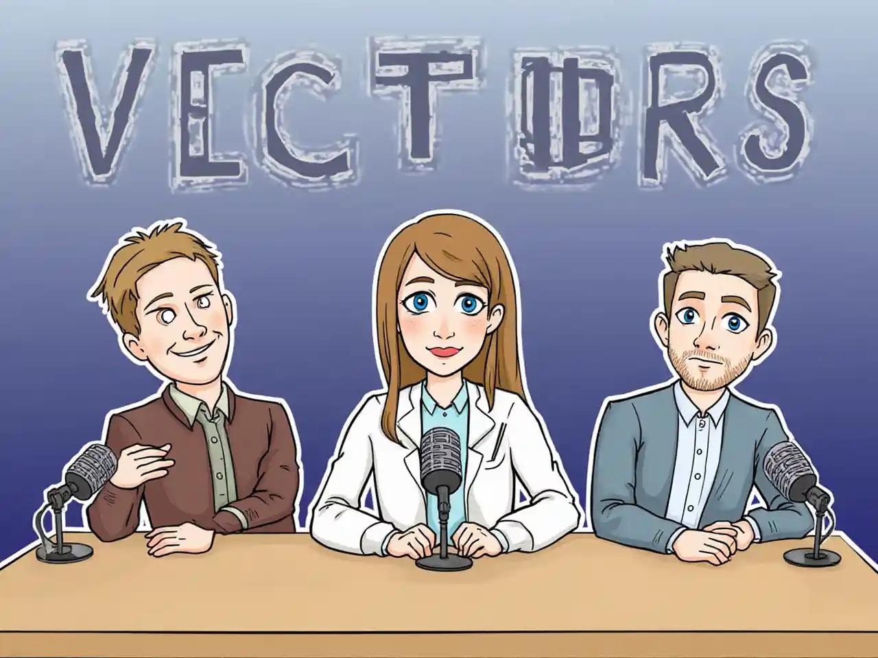 Illustration de la couverture du podcast, trois personnes avec un micro
