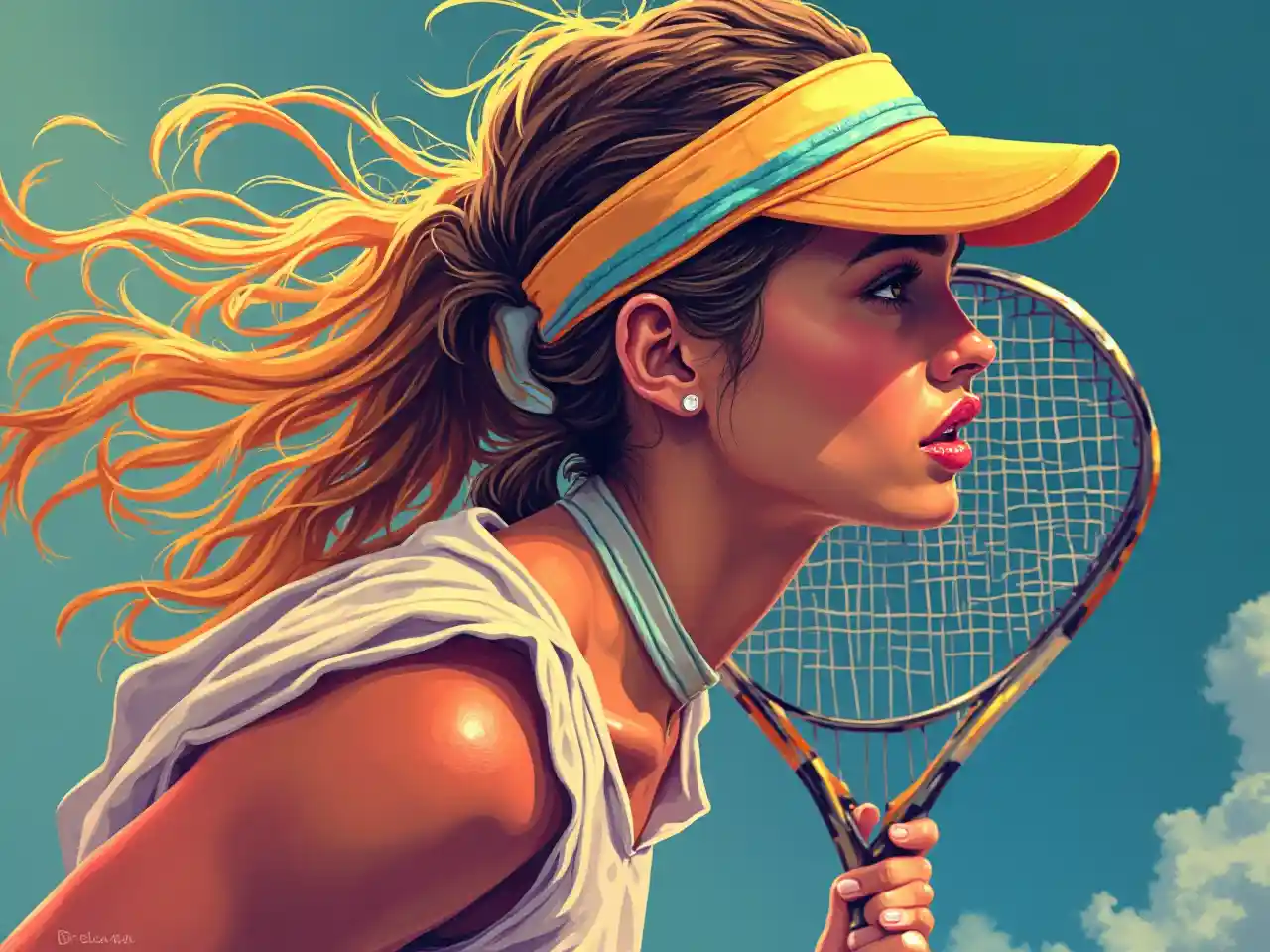 OliviaPortrait de tennisman style années 80 aux couleurs vives