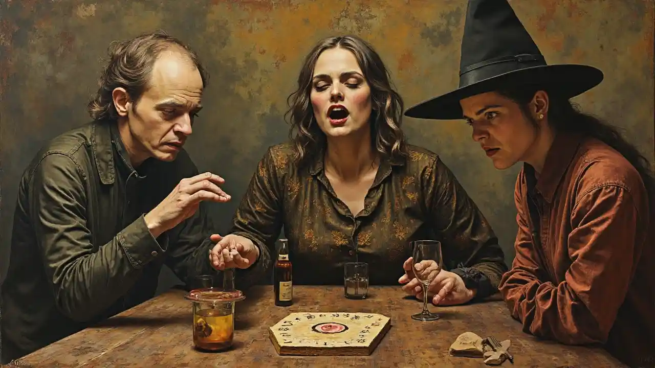 Les sorcières – détails intérieurs, chefs-d 'œuvre du surréalisme – peintures à l'huile de Roland Topol, Paul Klee, Balthus