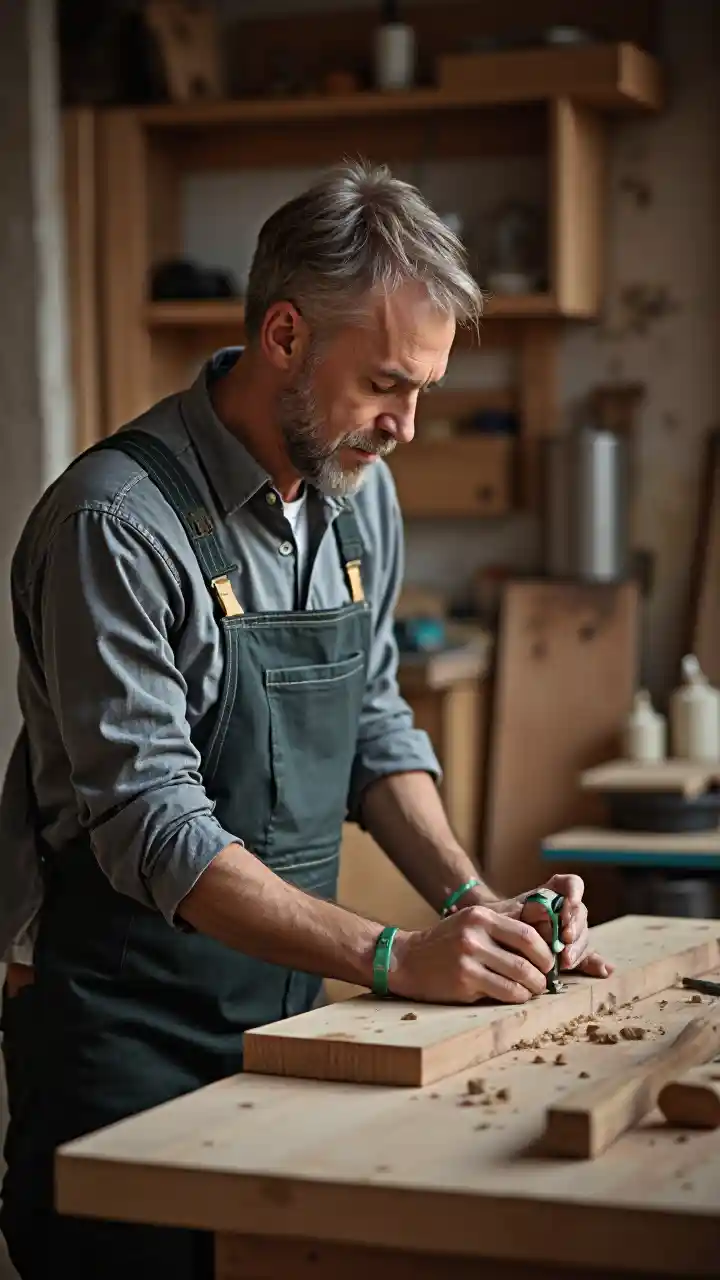 Un homme utilise du bois pour travailler dans un atelier