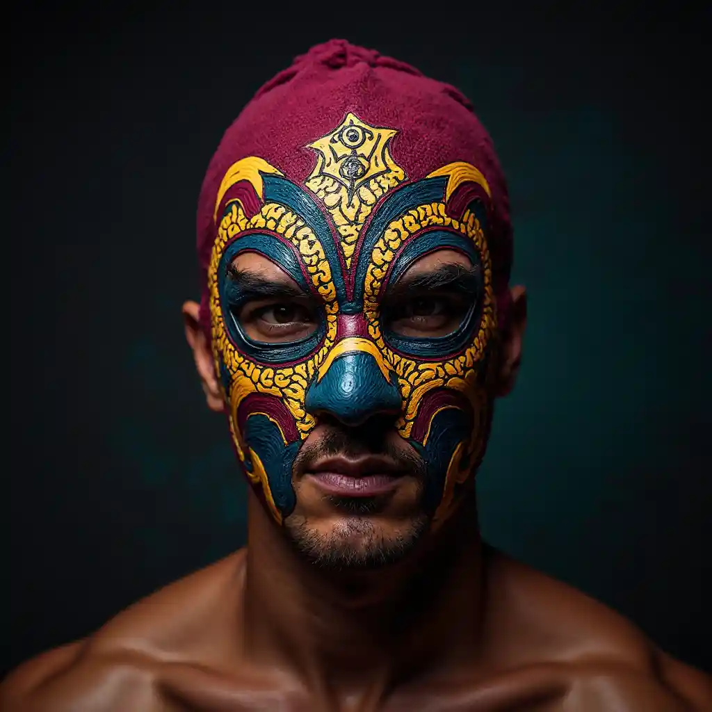 ColtenPortrait de lutteur mexicain masqué, couleurs vives et saturées, couleurs contrastées, photos de plateau, portraits professionnels, couleurs riches, images détaillées