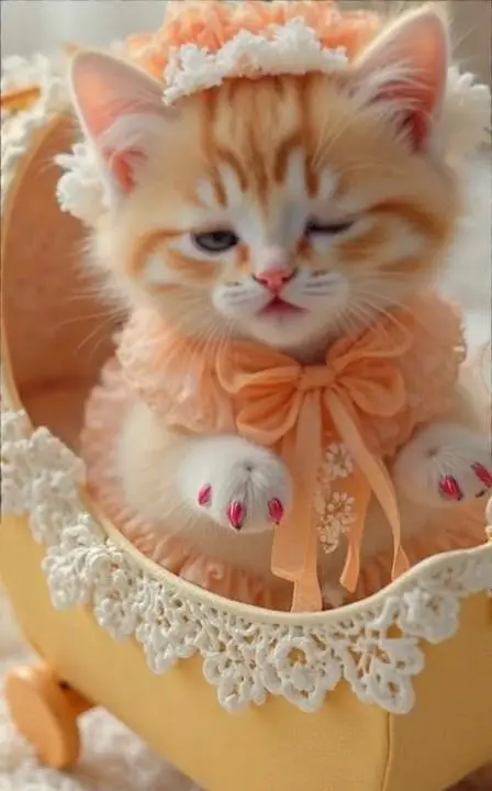 À la rencontre du plus mignon des chatons orange, il se niche dans un charmant panier en crochet jaune accompagné d'une délicate dentelle blanche. Vêtue d'une jolie tenue de couleur pêche et d'une jolie garniture de dentelle, cette petite boule de poils est un spectacle irrésistible! Grâce à une certaine magie intelligente de l'IA, la cagnotte semble s'exprimer d'une manière qu'on n'aurait jamais imaginée. Sa petite bouche est parfaitement synchronisée avec ses airs mélodieux et ses phrases ludiques, difficile de ne pas rire! La combinaison fantasque d'une mignonne velue et d'un son charmant crée une expérience vraiment glamour. Regarder cette petite star voler le spectacle, remplir nos cœurs de joie et de rire, prouve une fois de plus que les animaux de compagnie peuvent apporter un peu de magie à notre vie quotidienne!