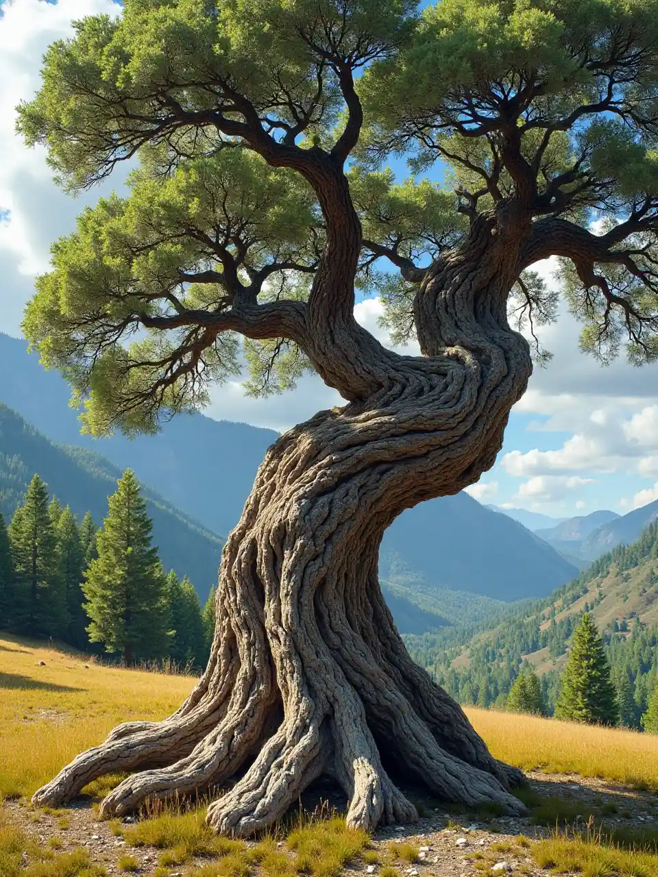 Leila500 वर्ष से अधिक पुराना एक जैतून का पेड़, जिसका बड़ा खड़ी तने वाला तना सामने दिखाई देता है, जबकि पीछे एक छोटा सा गाँव है, जो वसंत की तस्वीर है