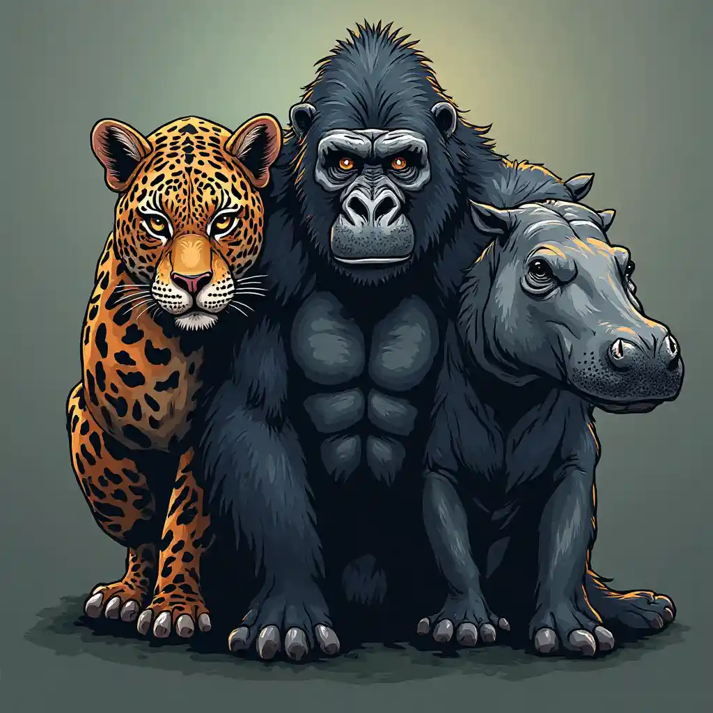 मिश्रित जानवरों की एक अनूठी छवि बनाना: गोरिल्ला, जैगुआर और हिप्पोटो