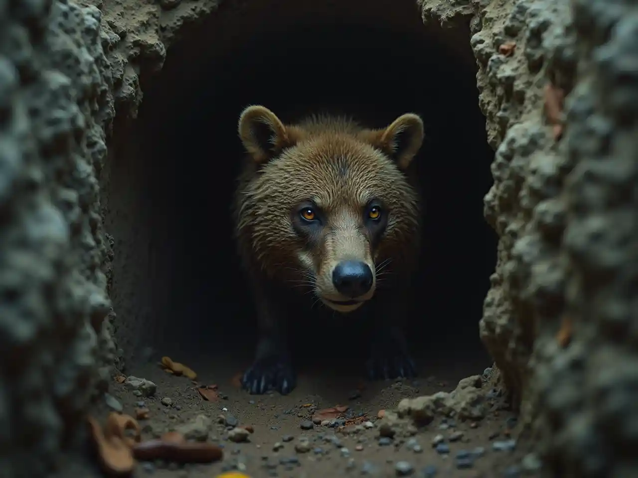 बियर कंबल के नीचे से बाहर आता है और कैमरे के सामने मुस्कुराता है