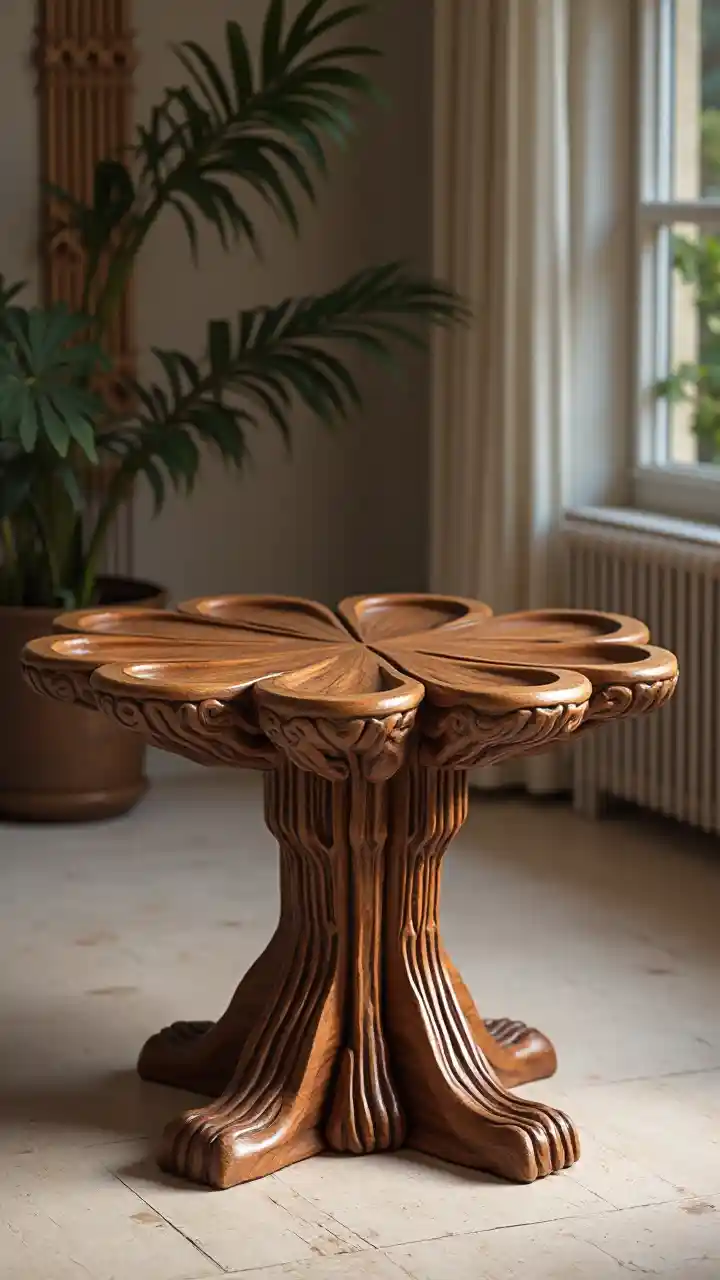 फूल के आकार में एक लकड़ी की मेज का नार्वेजियन डिजाइन फर्नीचर