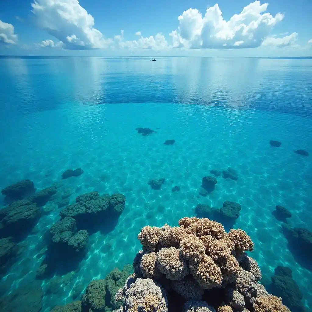 नीले रंग और समुद्री जीवन के साथ कोरल एटोल