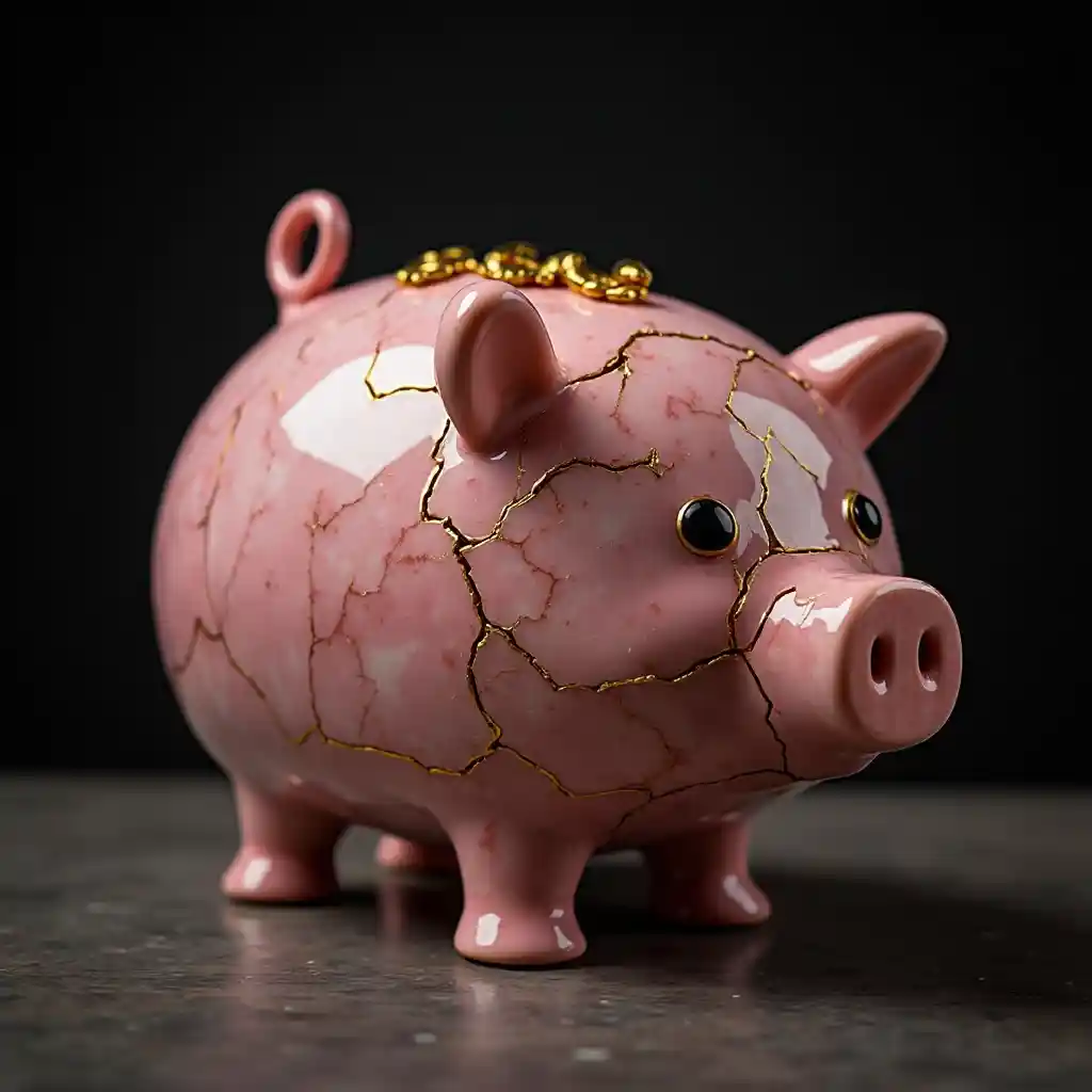 सोने के साथ गुलाबी संगमर पिग्गी बैंक
