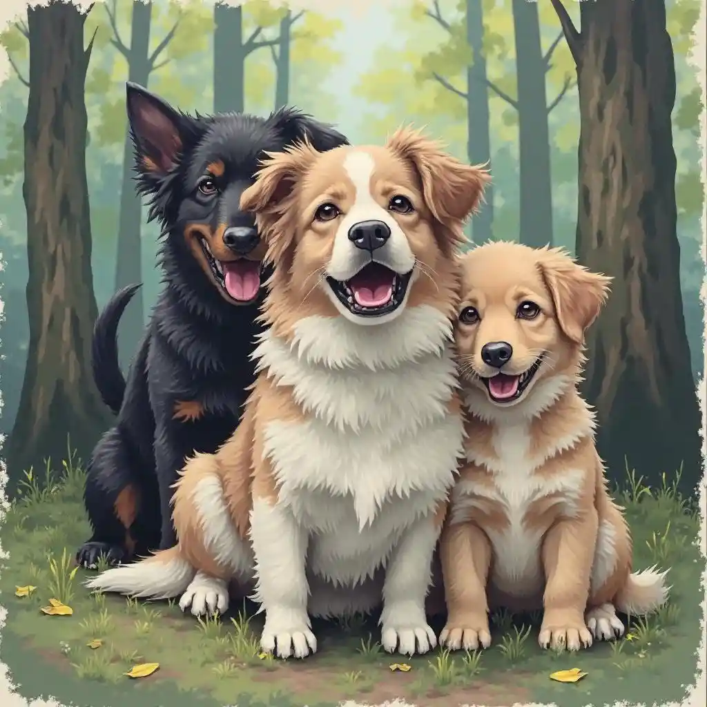 pastel、dogと幼女、 in the woods、3 heads、 1 girl、dog、high contrast、detailed depiction、Super Detail、Beautiful Girl、美しいdog、