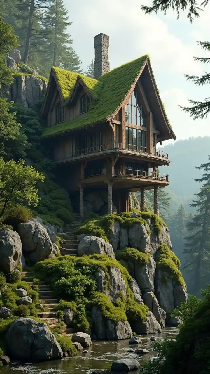 आधुनिक_एल्फिन_घर_वन के एक पहाड़ी किनारे पर:: दो_स्तरीय, आंशिक_बंद_पहाड़ी में:: लॉन के साथ पृथ्वी की छत:: सुपर_बड़ी खिड़कियों के साथ:: सजावट और वास्तुकला के मध्ययुगीन उद्देश्यों:: एक_आश्चर्यजनक_कला_दृश्य से भरा_