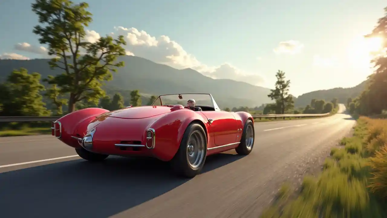 Brynnएक सुंदर इतालवी ग्रामीण सड़क पर लाल 1970 के अल्फा रोमियो जुलिया - जीटी 1300 के भविष्यवादी 2050 संस्करण की कल्पना करें