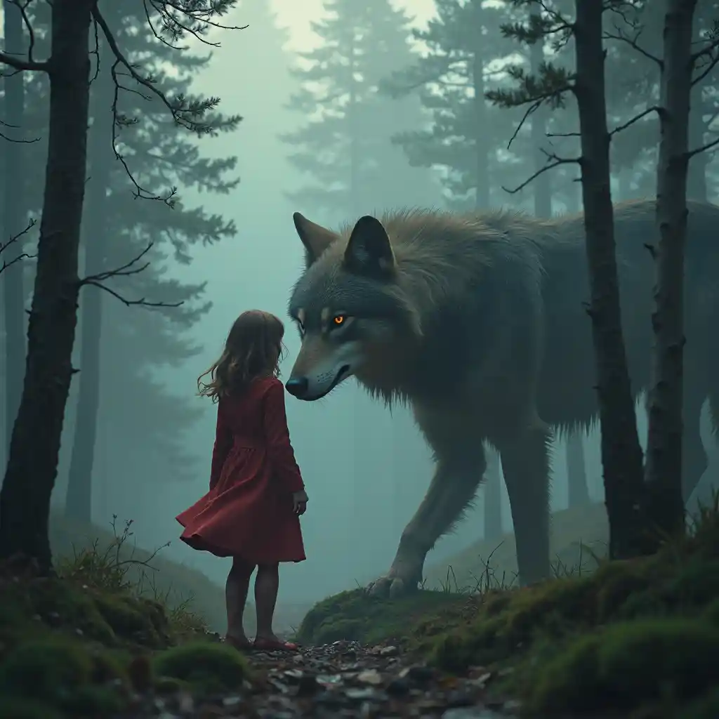 लाल में लड़की बनाम मिस्टी फॉरेस्ट में भेड़