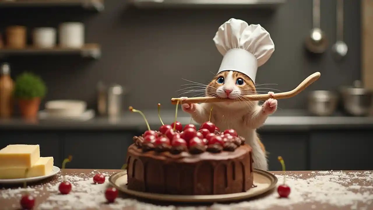 @ftVHUOG95gSwfMRwTSLB चेरी और कैरमेल के साथ एक सुंदर चॉकलेट केक को सजाने जा रही है। एचडीआर अल्ट्रा उच्च गुणवत्ता, उच्च विवरण. @ftVHUOG95gSwfMRwTSLB एक ऊंची शेफ की टोपी पहन रहा है और अपने मुंह में एक लकड़ी का स्पैटल रख रहा है। पृष्ठभूमि एक व्यावसायिक बेकरी है जिसमें गुर्मेट रसोई उपकरण और सामग्री हैं, काउंटरटॉप आटा से धूल है और इसमें कुछ बटर और अन्य उपयोग किए गए केक सामग्री हैं। @ftVHUOG95gSwfMRwTSLB की दोनों आँखें स्पष्ट रूप से दिखाई दे रही हैं, और उनका चेहरा प्रसन्न है। @ftVHUOG95gSwfMRwTSLB की एक नीली और एक पीली आंख है। वह अपने पीछे के पैरों पर खड़े हैं। उसका शरीर केक या काउंटरटॉप को नहीं छू रहा है।