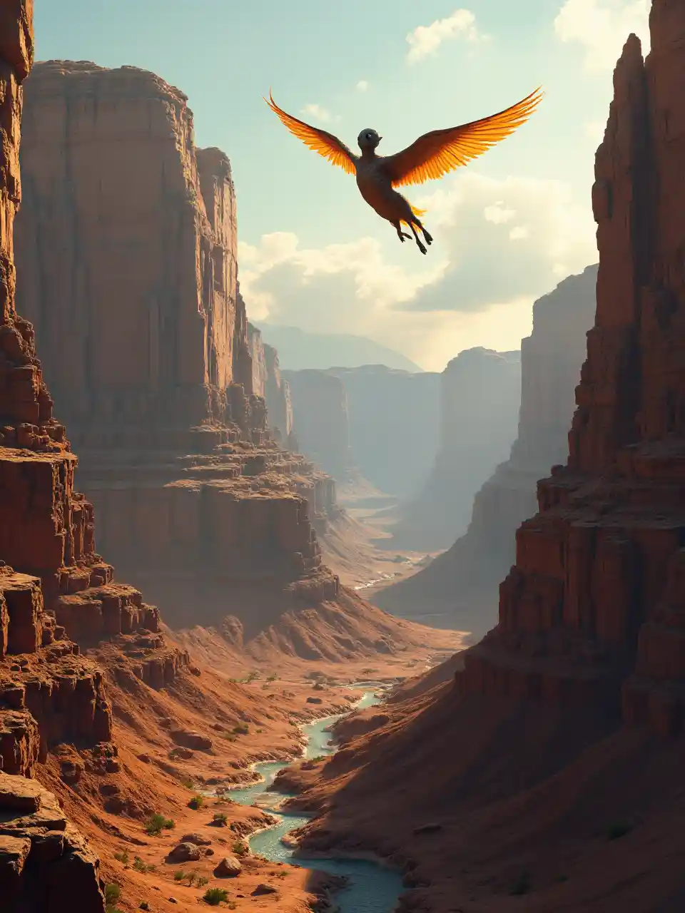 ग्रैंड कैन्यन का एक विज्ञान कथा संस्करण, चट्टानों में भूरे और सोने के रंग, ऊपर से उछल रहे (अर्थी) विंग एलियंस, अविश्वसनीय चट्टान संरचनाएं,