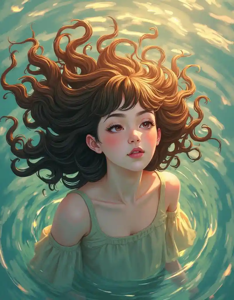 (एक युवा बाल रानी का यथार्थवादी चित्रण ऊपर से एक ऊंचा परिप्रेक्ष्य से एक पक्षी की आंख में चित्रित किया गया हैः 4) एक स्वप्नमय अमूर्त। एक मेस्मेरी के खिलाफ
