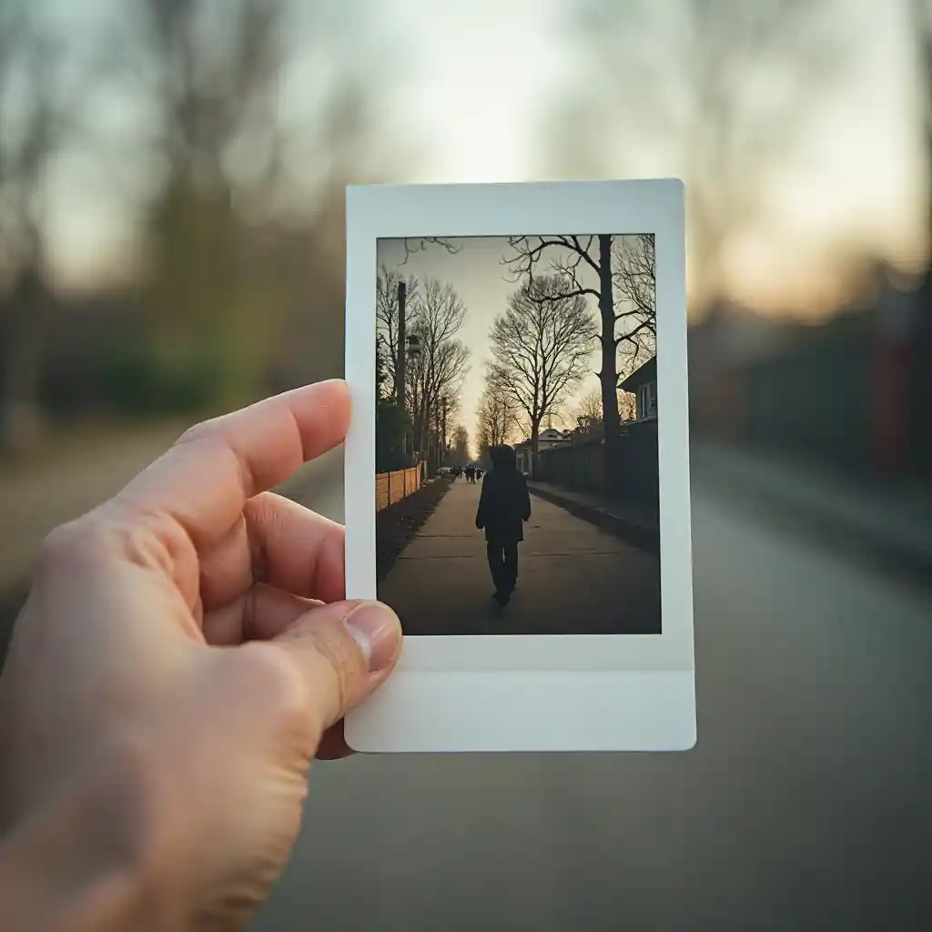 एक क्षणिक तस्वीर एक सहज क्षण को पकड़ती है, छवि अभी भी हाथ में विकसित हो रही है।