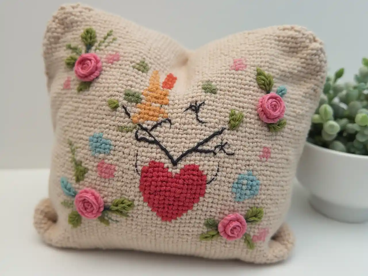 एक कुस्चेन फॉर पेट्रा विथ हार्ट और फूलों से बंटम गार्न
