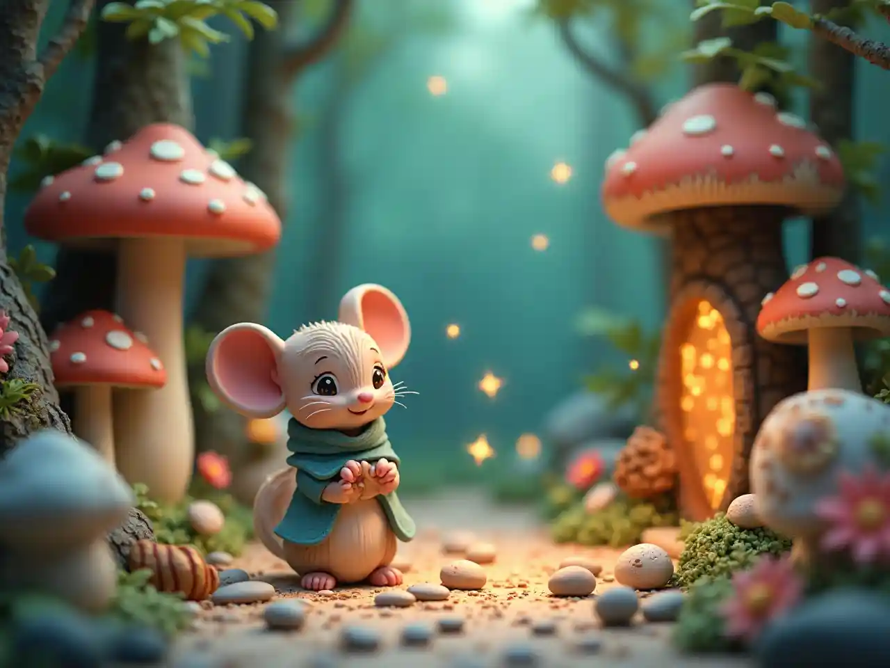 जादुई जंगल में आनंदित मिट्टी के चूहे का साहसिक