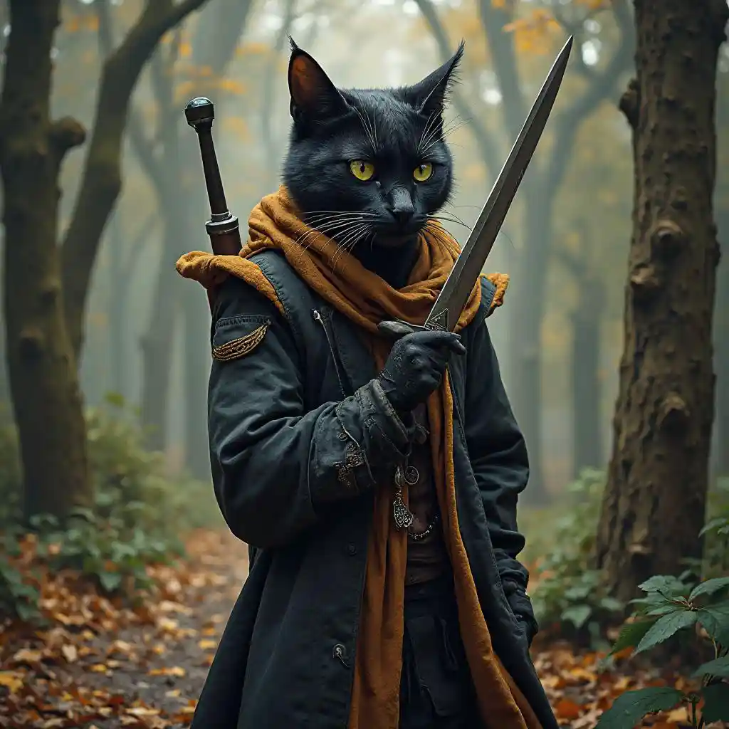 बिल्ली निंजा के साथ तलवार ना हाथ ना निशान नहीं बाएं आंख
