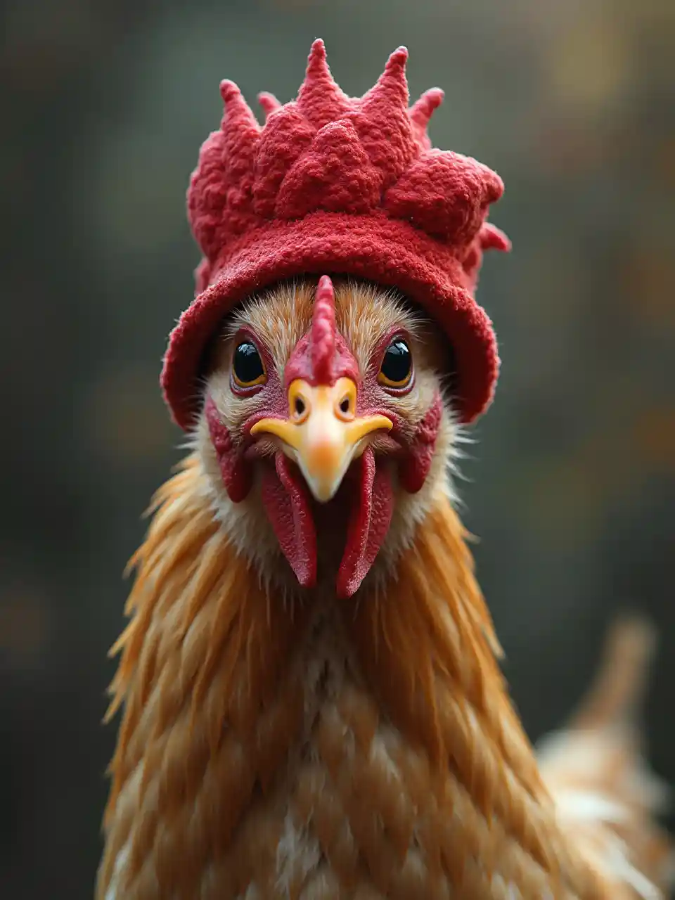 लाल टोपी पहने हुए मुर्गी