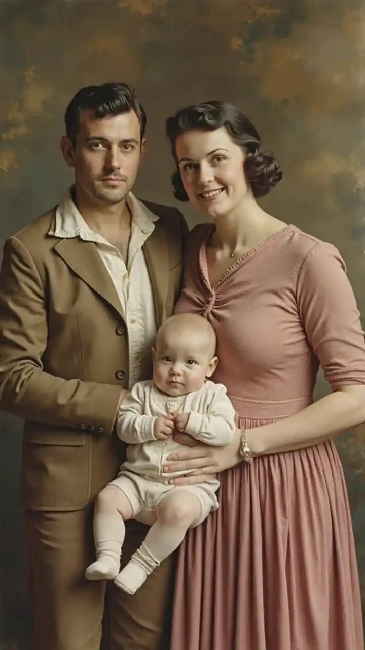 1 बच्चे के साथ विंटेज परिवार चित्र