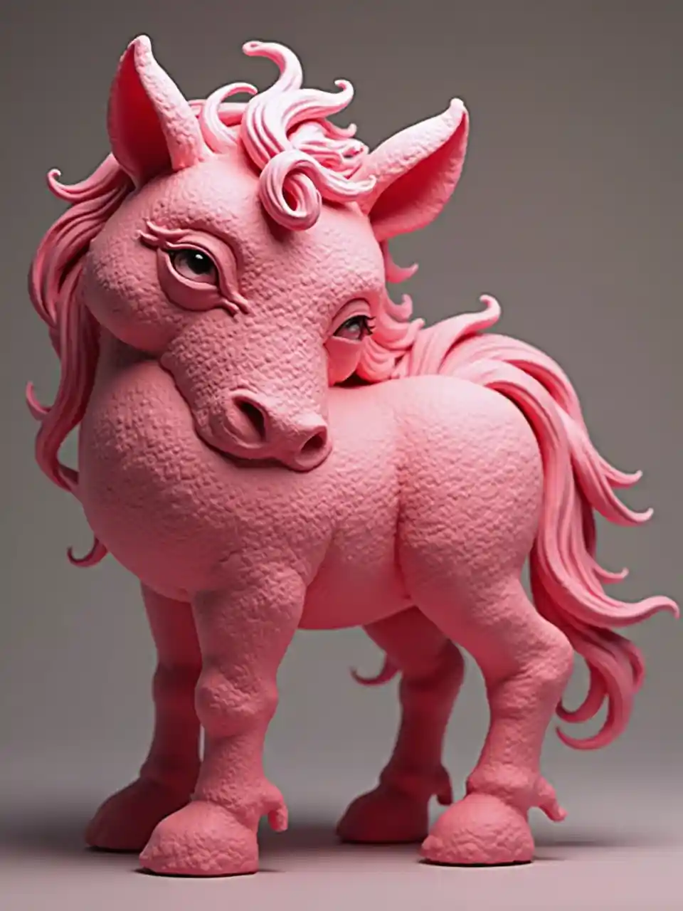 Miacrea un caballo rosa en 3D con dimensiones de 24.5 cms x 20.5 cms a 300 dPI